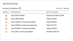 Notifications Module: An instant view of which cases require immediate attention. This table summarizes what cases are currently pending additional details or were unsuccessfully processed and require manual intervention