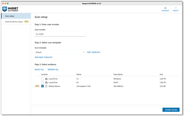 For agencies who have adopted automation technology like Magnet AUTOMATE, OUTRIDER can easily be incorporated into workflows, allowing for quick triage of devices before further analysis. This can help to identify a subset of devices that may have been submitted in any given case to best allocate resources for processing with forensic tools.