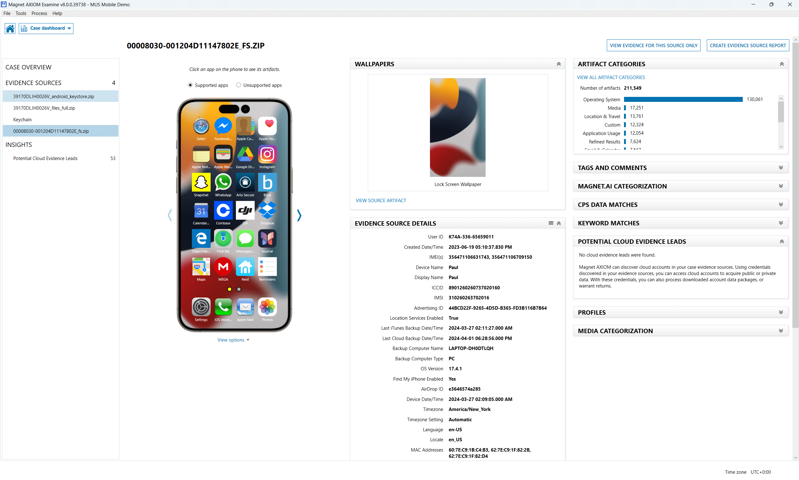 Easily recover deleted data and analyze digital evidence from mobile, computer, cloud, and vehicle sources in one case file, with an artifact-first approach. Discover the full history of a file or artifact to build your case and prove intent. Magnet Axiom provides the most up-to-date artifact support for the most recent devices and sources.