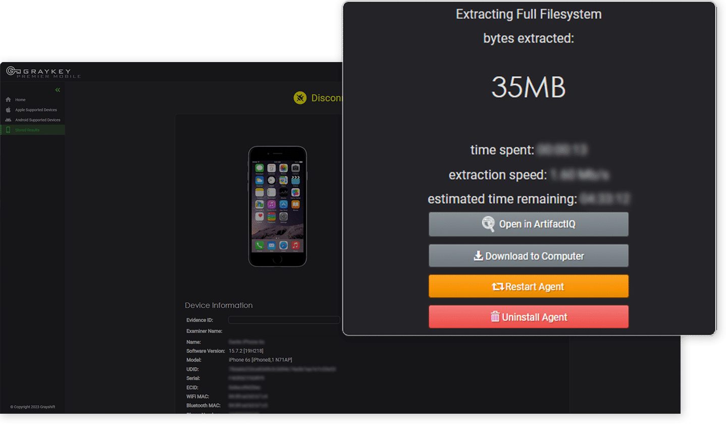 - Ability to access and extract evidence from mobile devices irrespective of device state.