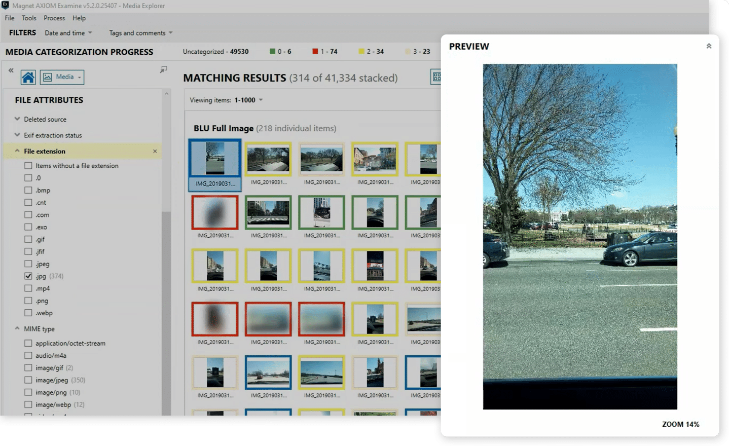 Les outils d’analyse de Magnet Axiom permettent de faire émerger automatiquement plus de preuves, afin que vous puissiez vous concentrer sur ce qui est pertinent pour votre dossier. Profitez pleinement de Media Explorer, Cloud Insights Dashboard, Magnet.AI, Connections, Timeline, etc., pour trouver rapidement les preuves numériques dont vous avez besoin.