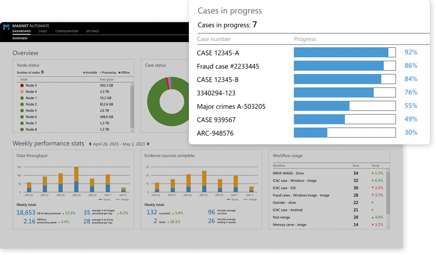 Unite Automate with your other digital forensics solutions across your entire workflow for faster, more effective investigations. Magnet One effortlessly streamlines your workflows and enables seamless collaboration among examiners, investigators, prosecutors, command staff, and agency leadership.
