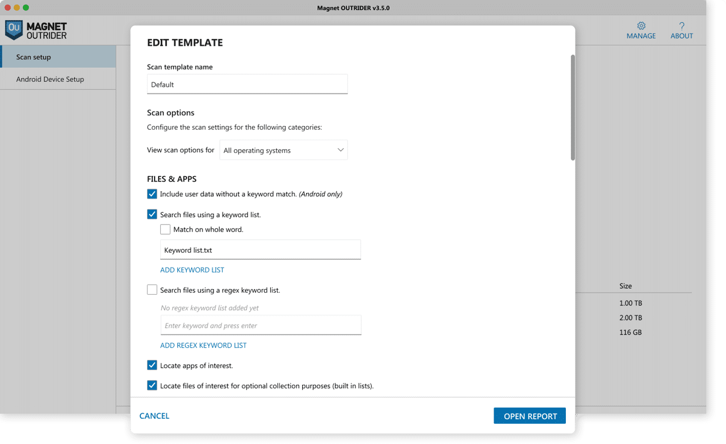 Save valuable time in the field or in the lab by using Magnet Outrider to quickly scan iOS and Android mobile devices and automatically uncover SMS/MMS messages, illicit apps, device ID, recently used apps, contact list, call logs, and more, in minutes.