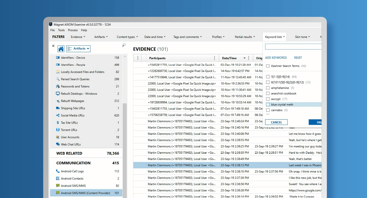 Learn how to use AXIOM Examine to explore recovered artifacts, including searching, filtering, tagging, and creating profiles.
